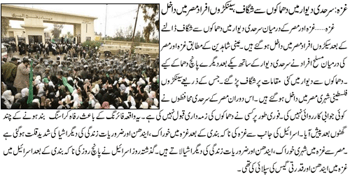GAZA CITY: Hundreds of Gazans poured into Egypt on Wednesday after militants set off at least five explosions along the walled-off border of the Hamas-ruled Gaza Strip, witnesses said.